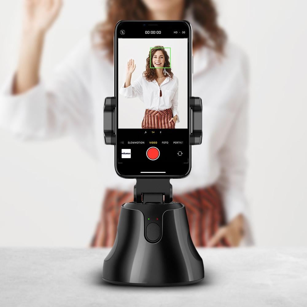 استمتع بالتصوير بدون مساعدة، وخلّي كل لحظة تلقطها عدسة جوالك تلقائيًا مع حامل عصا سيلفي الذكي. الجهاز يعمل بتقنية التتبع الذكي ويمنحك مرونة عالية في تصوير الفلوقات والمقاطع الاحترافية، سواء أفقية أو عمودية.